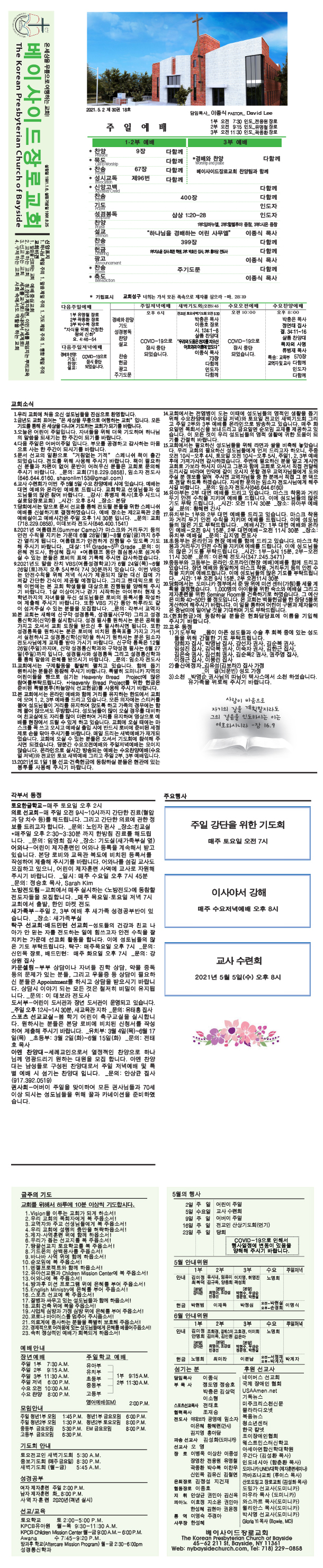매주일 발행되는 교회 주보입니다.