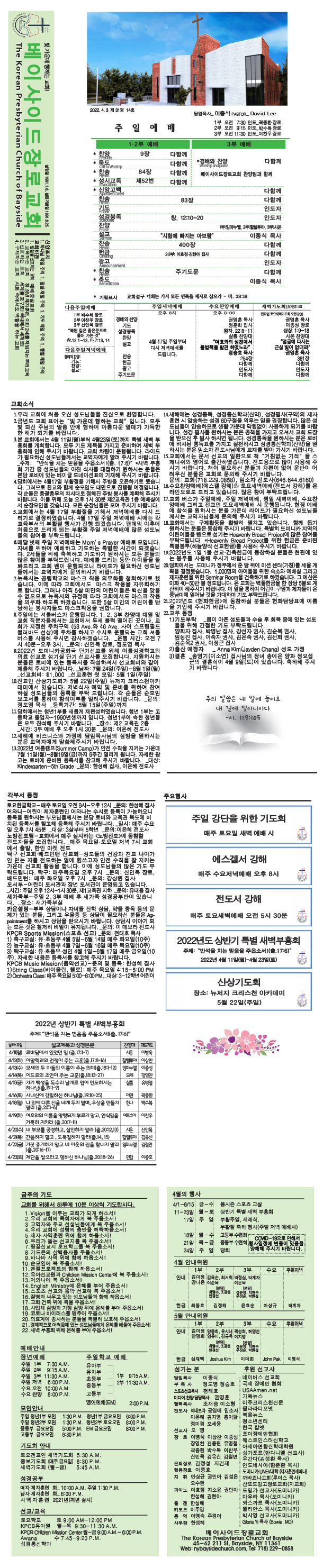 매주일 발행되는 교회 주보입니다.