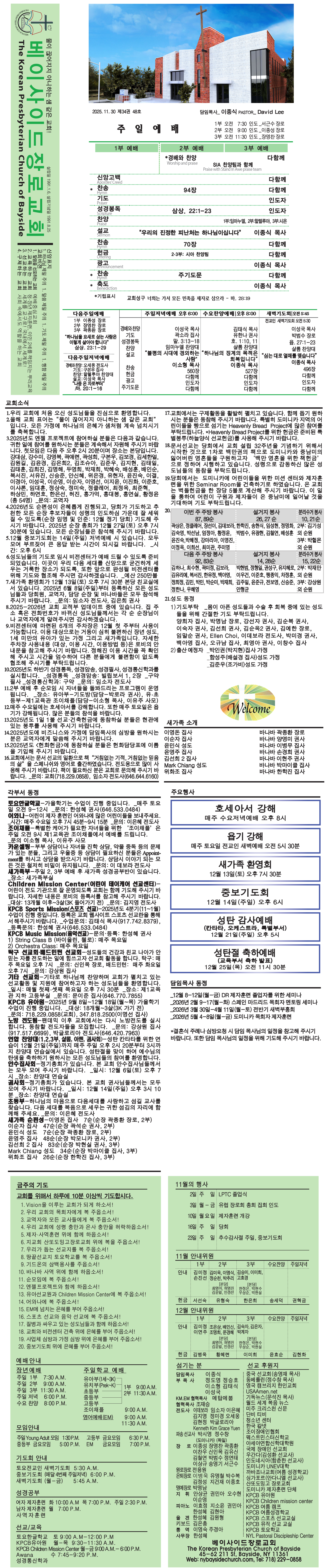 매주일 발행되는 교회 주보입니다.