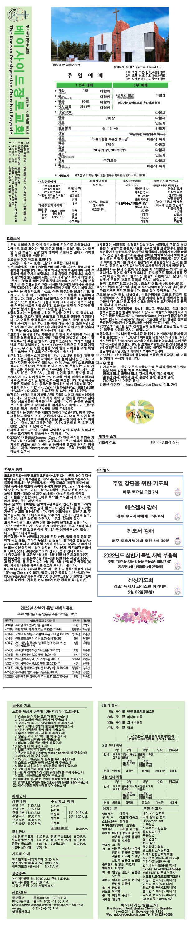 매주일 발행되는 교회 주보입니다.