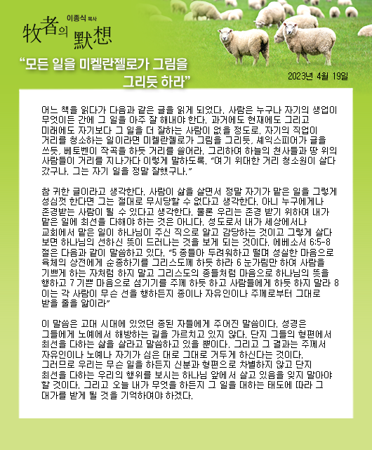 "모든 일을 미켈란젤로가 그림을 그리듯 하라"