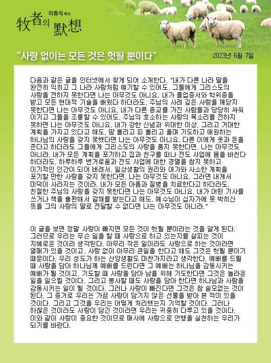 "사랑 없이는 모든 것은 헛될 뿐이다"