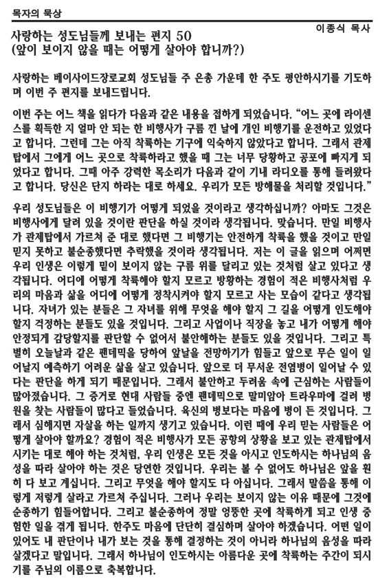 사랑하는 성도님들께 보내는 편지 50
